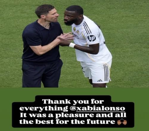 吕迪格社媒告别阿隆索:与你的合作非常愉快,祝你未来一切顺利