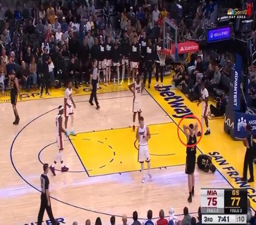 第三节还剩7分42秒,巴特勒内线接球,米切尔是绕前想要破坏这个球权,两人在空中有一个小碰撞,巴特勒落地时他的右腿有一个震荡,右膝小范围的反关节。
