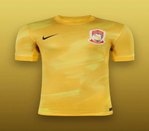 新赛季青岛西海岸主场球衣以醒目的亮黄色为主色,搭配黑色点缀,采用俱乐部徽章上龙凶猛而有力的元素,既有力量感又不失优雅。