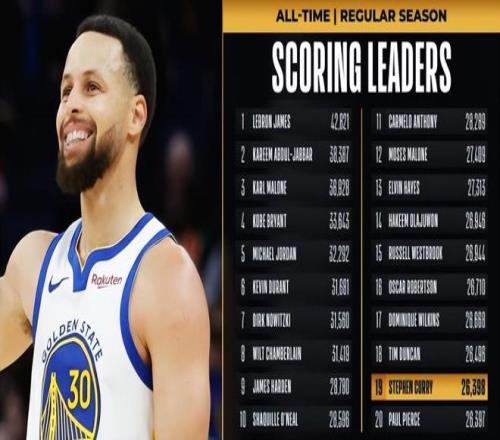 1月29日NBA常规赛继续进行,金州勇士在库里27分1篮板2助攻2抢断,全队8人得分上双的情况下轻松击败了西部鱼腩犹他爵士队,球队战绩27胜22负稳居第八领先身后开拓者4.5个胜场,距离身前的太阳也只有2个胜场。此役对于库里来说不仅仅个人发挥出色,帮助球队赢下比赛的同时还打破了凯尔特人传奇球星保罗皮尔斯(真理)的生涯纪录!赛前据NBA官方统计,库里生涯总得分26397分,和皮尔斯并列NBA历史得分榜第十九,本场比赛只要得到1分就能完成超越,比赛首节8分10秒时库里外线单打马尔卡宁飚中三分,正式完成对“真理”皮尔斯的超越。加上本场比赛的27分库里生涯总得分来到了26424,距离“石佛”邓肯生涯总得分仅有62分差距,未来2-3场比赛就将大概率完成超越,让我们一起恭喜祝福库里!