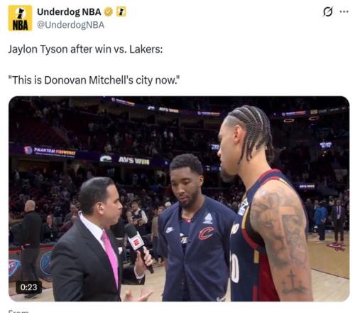 随后米切尔表示:“我很感谢你能这么说,但勒布朗奠定了这座城市的基础,他为这座城市付出了很多,他值得这份热情。”