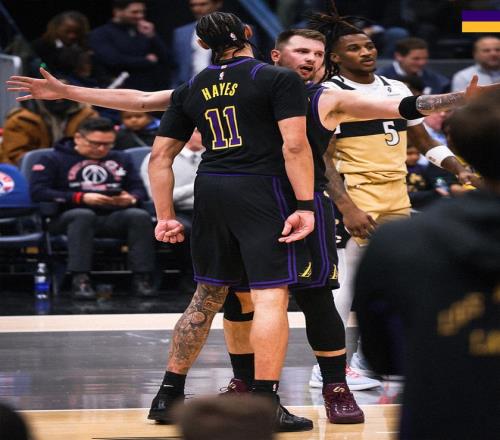 湖人队的东契奇上半场得到26分、10个篮板和11次助攻,艾顿得到14分和5个篮板,勒布朗得到14分,海耶斯得到10分;奇才队的萨尔得到12分,卡林顿得到11分。