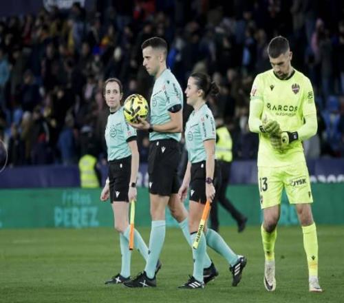 在今天凌晨进行的西甲第22轮比赛中,莱万特主场0-0战平马竞,其中两名助理裁判分别是朱迪特-罗马诺和埃利安娜-费尔南德斯。